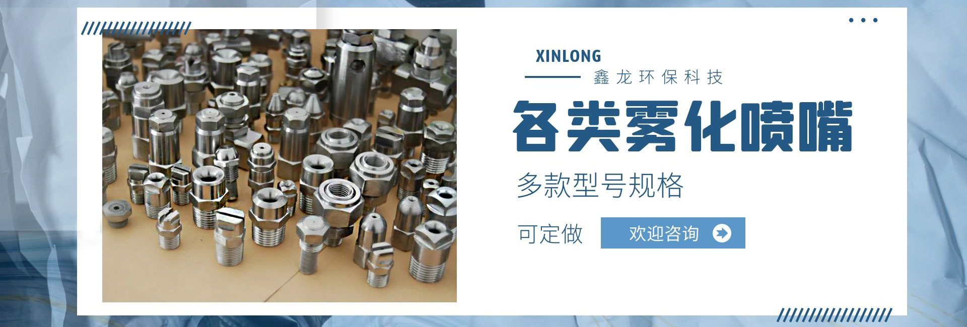 深圳市鑫龍環(huán)保科技有限公司是專業(yè)從事各類噴嘴研制和開發(fā)的廠家,技術力量雄厚,生產工藝先進,檢測手段齊全,管理制度嚴格,產品質量穩(wěn)定可靠。產品種類多達上萬種,適用于涂裝處理、環(huán)保、線路板、電子電力、汽車制造、家電制造、造紙業(yè)、紡織業(yè)、防火等行業(yè);我公司產品不僅為國內多家大中型企事業(yè)選用,還配套外銷日本、美國、東南亞等國家和地區。我們具有本行業(yè)前衛(wèi)的噴嘴制造設施,在我們裝備完善的噴嘴實驗室,可以進行各種類型噴嘴的測試研究,以優(yōu)化噴霧系統的性能。我公司提供專業(yè)技術、應用和售后服務,幫助用戶選擇適合的噴嘴,并保持噴嘴在良好條件下運行。從噴嘴選擇指導,到量身定制的設計,直到噴霧顆粒的測試分析,在每個訂單中都包含了我們好的技術支持,用戶反映:我司顯著的特點是銷售工程師在幫助用戶降低成本、減少加工和維修時間,降低工業(yè)用水和化學劑消耗等方面有著非常豐富的經驗,使用戶可以更經濟、更有效的解決實際問題!我們繼續(xù)堅持專業(yè)是金的理念,制造好的噴嘴是我們永遠的追求和努力!